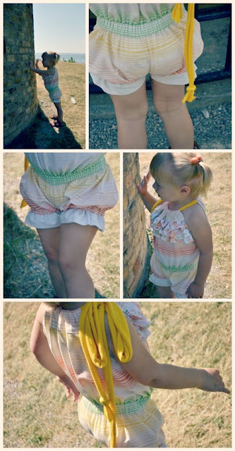 Now you'll add your elastic pieces. It'll really start to look like a romper after this: