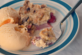 This cobbler starts out as a very sordid failure. It's true. I've been craving cherry cobbler for weeks, and had this idea in my head that pears and cherries BELONG together in cobbler form. I reviewed a few recipes for cobbler and decided to have a go. Remember how I explained that ideas lead to experiments in the kitchen which sometimes lead to a delicious success? Well, more often than that, they lead to a dismal failure.