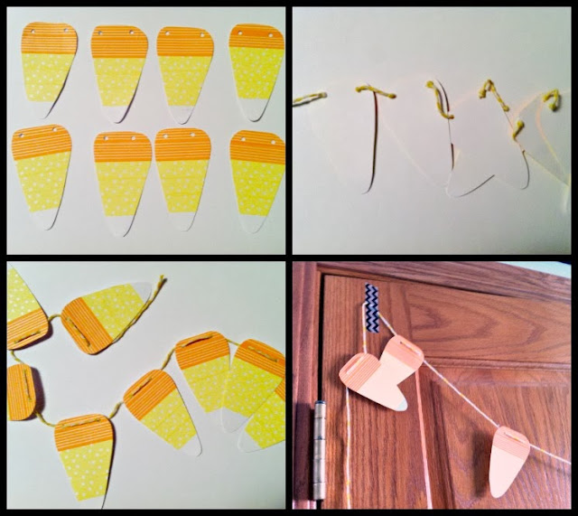 3. I wrapped a few of my large books with drawing paper and washi tape in lime, black, white and orange. I stacked the bone wreath on top of them.